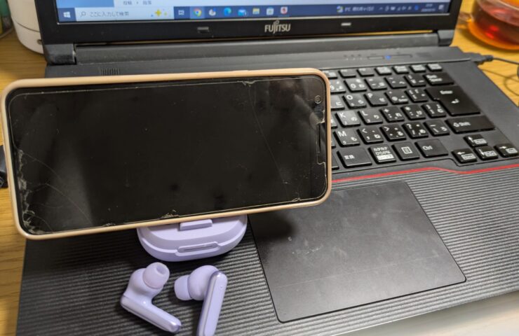 実はP40iを選んでわりと感動したのがこれ。なんと、イヤホンケースのフタを開けると、そこにスマホを立てかけられるんです!