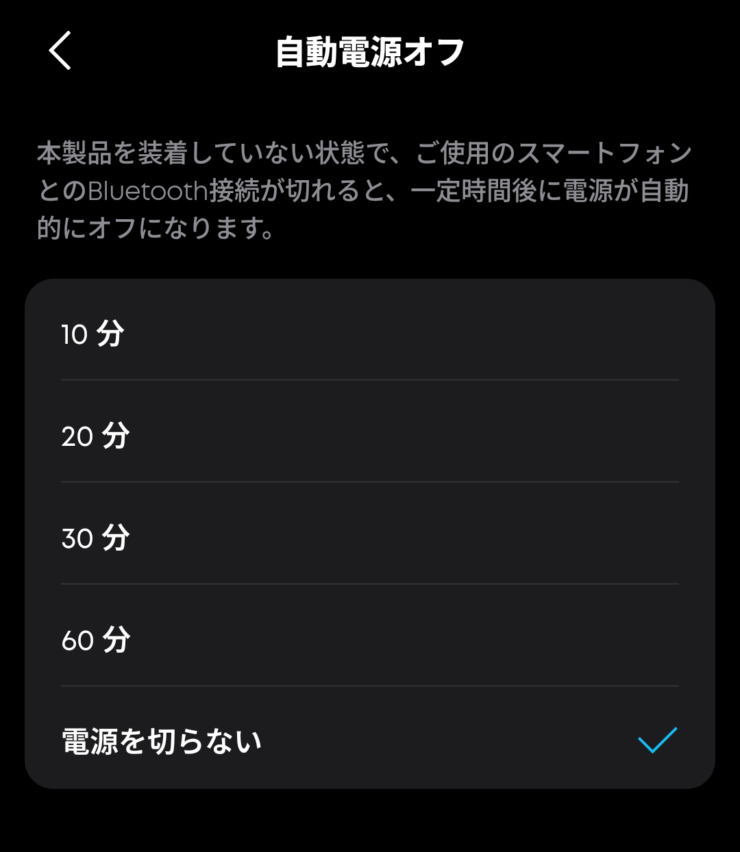 もう一つ、使っていて少し気になった点があります。それは「30分間接続や再生がないと自動で電源がオフになる」という機能です。バッテリー節約にはありがたいのですが、問題はそのあと!